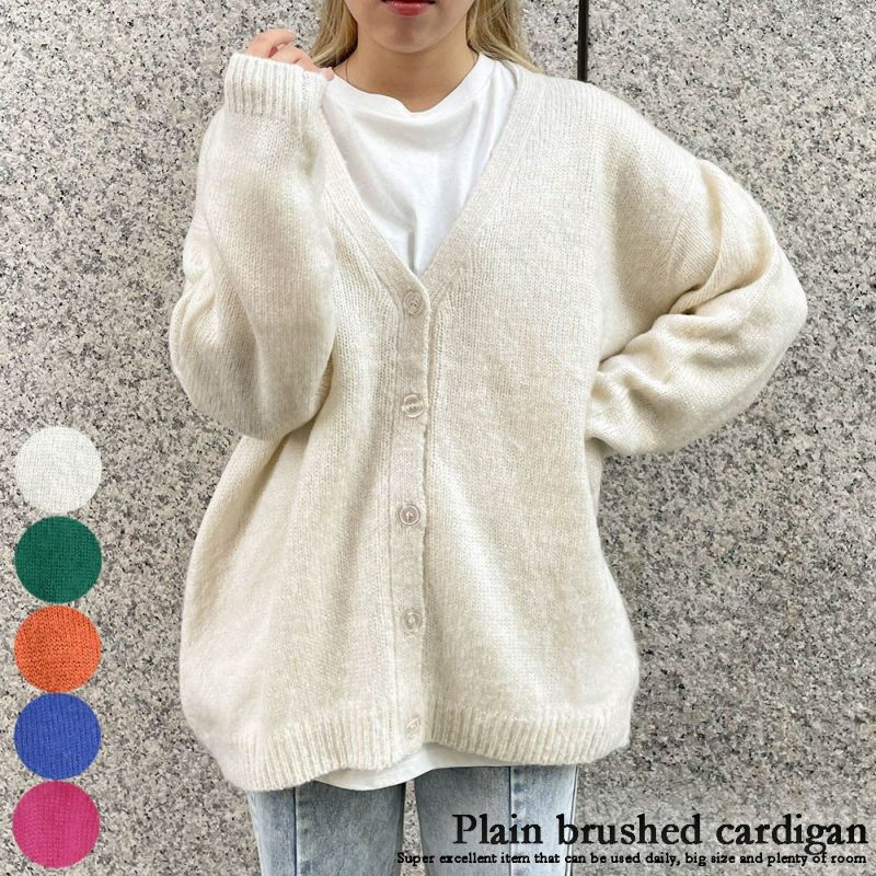 普段の羽織物に無地起毛カーディガンが登場★デイリーで使える超優秀アイテム♪ビッグサイズでゆとりたっぷり◎インナーにTシャツを用意して合わせるだけでコーデが完成でできちゃいます☆