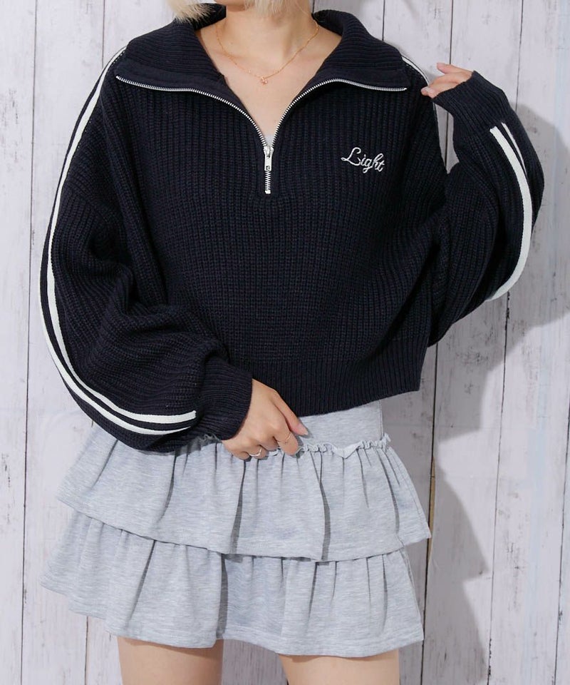 トレンド感抜群のハーフジップデザインに、袖のラインとバック刺繍でアクセントを効かせた一枚。短丈シルエットだから、ハイウエストボトムとも好相性でスタイルアップ効果も◎
