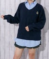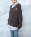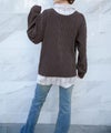 ケーブル編みのVネックニットにシャツをドッキング。重ね着風のディテールで、これ1枚でおしゃれに仕上がります。胸元のワンポイント刺繍もアクセント。ヒップまで隠れる丈感で、安心感のあるシルエット。