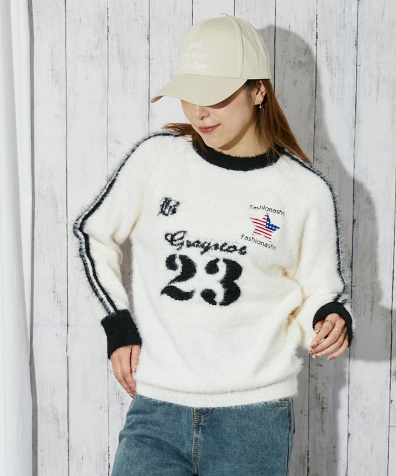 《ふわっとフェザーで存在感☆スポーティムード漂うナンバリングニット》