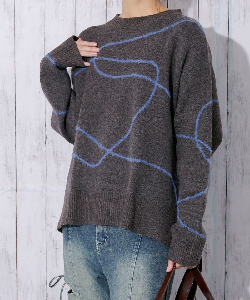シンプルなシルエットにライン柄が映えるニットプルオーバー。1枚でコーデの主役になれる存在感抜群のアイテムです。