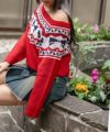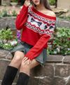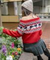 冬の定番ノルディック柄を、トレンド感たっぷりのリボン柄にアップデート。