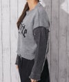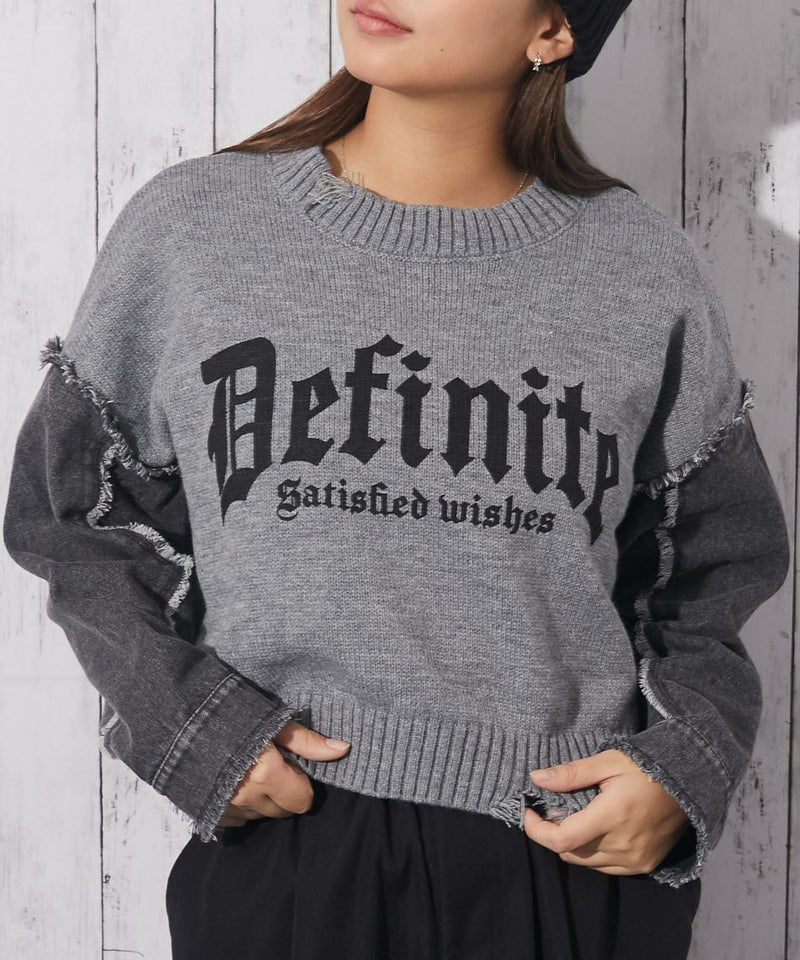 袖をデニム切替で仕上げた異素材MIXデザイン。
