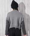 襟ぐりや裾、袖口にラフなカットオフ加工を施し、