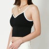 パイピングがカジュアル感を印象付ける2WAYブラトップが登場★紐はスタンダードに肩にかけたり敢えてクロスしたりなど使い分けで印象の変わる2WAY仕様のアイテム♪春先からはインナートップスとしてもトレンドライクに身に着けられる◎スッキリとしたライン出しをしてくれるインナーとしても、トップスとしても着用可能な万能ブラトップです☆