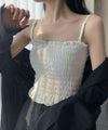 ジャケットやシアーシャツのインナーとしても、程よく華やかさをプラス。