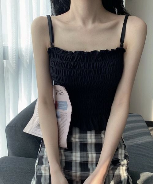カップ付きシャーリングキャミソール♡