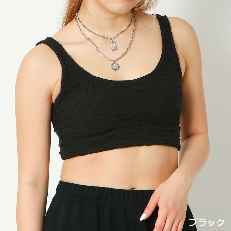 クシュっとしたデザインが可愛いタンクブラトップが登場★伸縮性のあるストレッチ素材で安心の着心地♪コーディネートのワンポイントになるアイテムで1枚で簡単にオシャレ上級者に見せてくれる◎カーディガンやシースルートップスを上から着用して、魅せるインナーとしてもお使いいただけます☆
