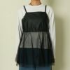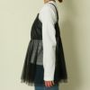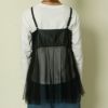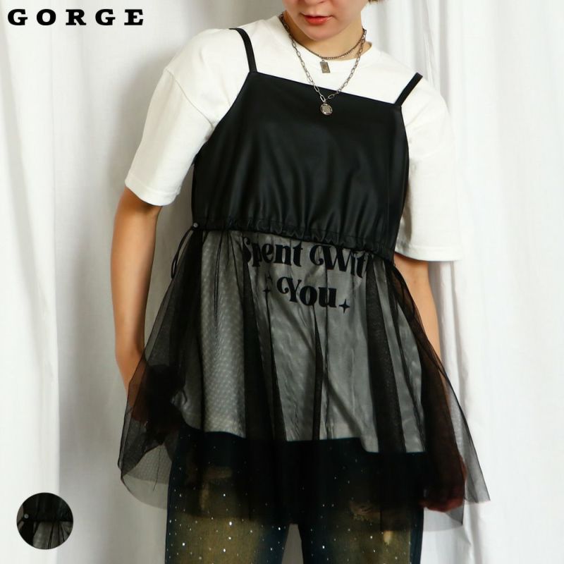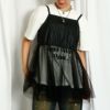トレンド感度の高いビスチェキャミソール。甘めのチュール素材とクールなフェイクレザーをミックスさせた甘辛アイテム。ふわりと軽やかに揺れ広がるチュールは重ね着に◎1枚重ねるだけでトレンド感を演出できるアイテムです。