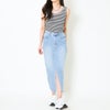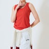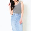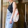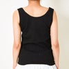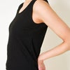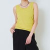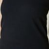 リブ素材ならではの縦のラインが強調され、すっきりとしたシルエットを演出してくれます。ネックラインやアームホールのカッティングが美しく、カジュアルながらも女性らしい印象を与えます。