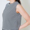リブ素材の縦ラインがスタイルをすっきり見せ、体にフィットしすぎない絶妙なシルエットが特徴です。丈感は長すぎず短すぎず、どんなボトムスともバランスが取りやすいのが嬉しいポイント。通気性にも優れているため、暑い季節でも快適に過ごせます。