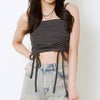 肩部分には可愛いリボンがあしらわれており、甘さとちょっとしたエッジの効いたファッションをを演出