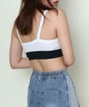 リブ素材の程よいフィット感と、バイカラーデザインが目を引くブラトップ。アンダーバンド部分はロゴ入りで、シンプルながらもアクセントになる1枚に。ノンワイヤーで締めつけ感が少なく、ストレスフリーな着心地もうれしいポイント。デイリー使いはもちろん、おうち時間やライトな運動にも◎