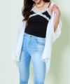 カーディガンやシアーシャツを羽織ったレイヤードスタイルはもちろん、ジャケットのインナーとして合わせるのもおすすめ。デニムやワイドパンツでカジュアルダウンしても、スカートに合わせて甘めにまとめても◎ シーズンレスで使えるので、着こなしの幅がぐっと広がる優秀アイテムです!