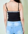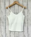 華奢な肩紐と、デコルテをきれいに見せるVネックラインが女性らしい印象に。胸元とボディラインに施された繊細なレースが程よい甘さをプラスし、上品さを引き立てます。リブ素材のボディは程よくフィットし、すっきりとしたシルエットを演出してくれます。
