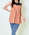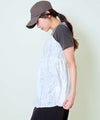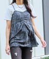 フロントにはシャーリングディテールを施し、バストラインを立体的に演出。やや広がりのあるAラインシルエットが体型を拾わず、動くたびに軽やかな印象を与えてくれます◎生地全体にはダメージ加工が施され、ヴィンテージ感のあるニュアンスをプラス。一方で、無数に散りばめられたラメストーンがキラキラと輝き、エッジの効いた中にも女性らしい華やかさを演出します。