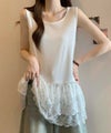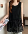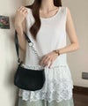 表情のあるテレコ素材に繊細なレースをたっぷり重ねた、フェミニンムード満点のペプラムタンク。1枚で着映えするデザインで、いつものコーデをぐっと華やかに格上げしてくれます。