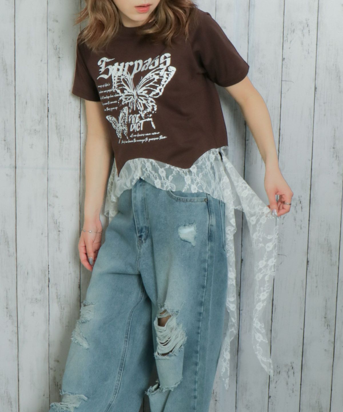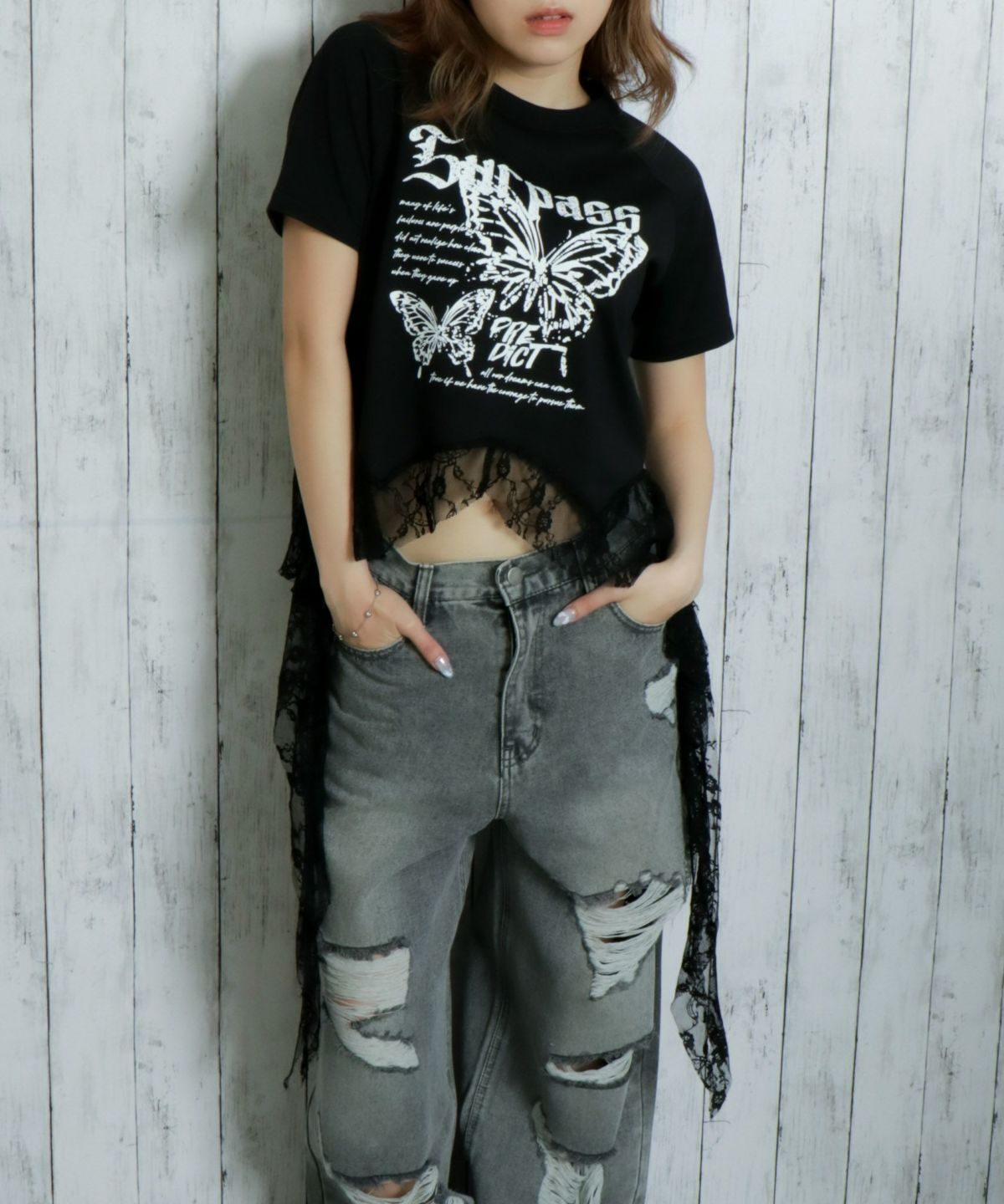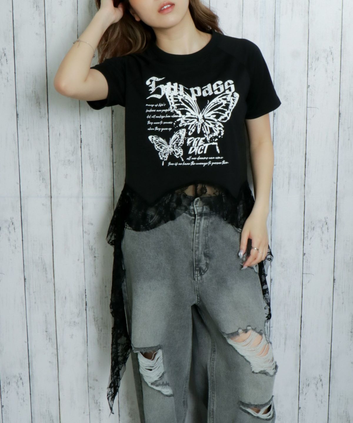 他の画像を見る 《バタフライ×ロングレース裾》レディース 半袖Tシャツ Y2K 甘辛MIX 春夏秋 2BUY10%OFF 定価 ¥ 4,389 のところ SALE価格 ¥ 1,419 税込 カートに入れる お気に入りに登録する