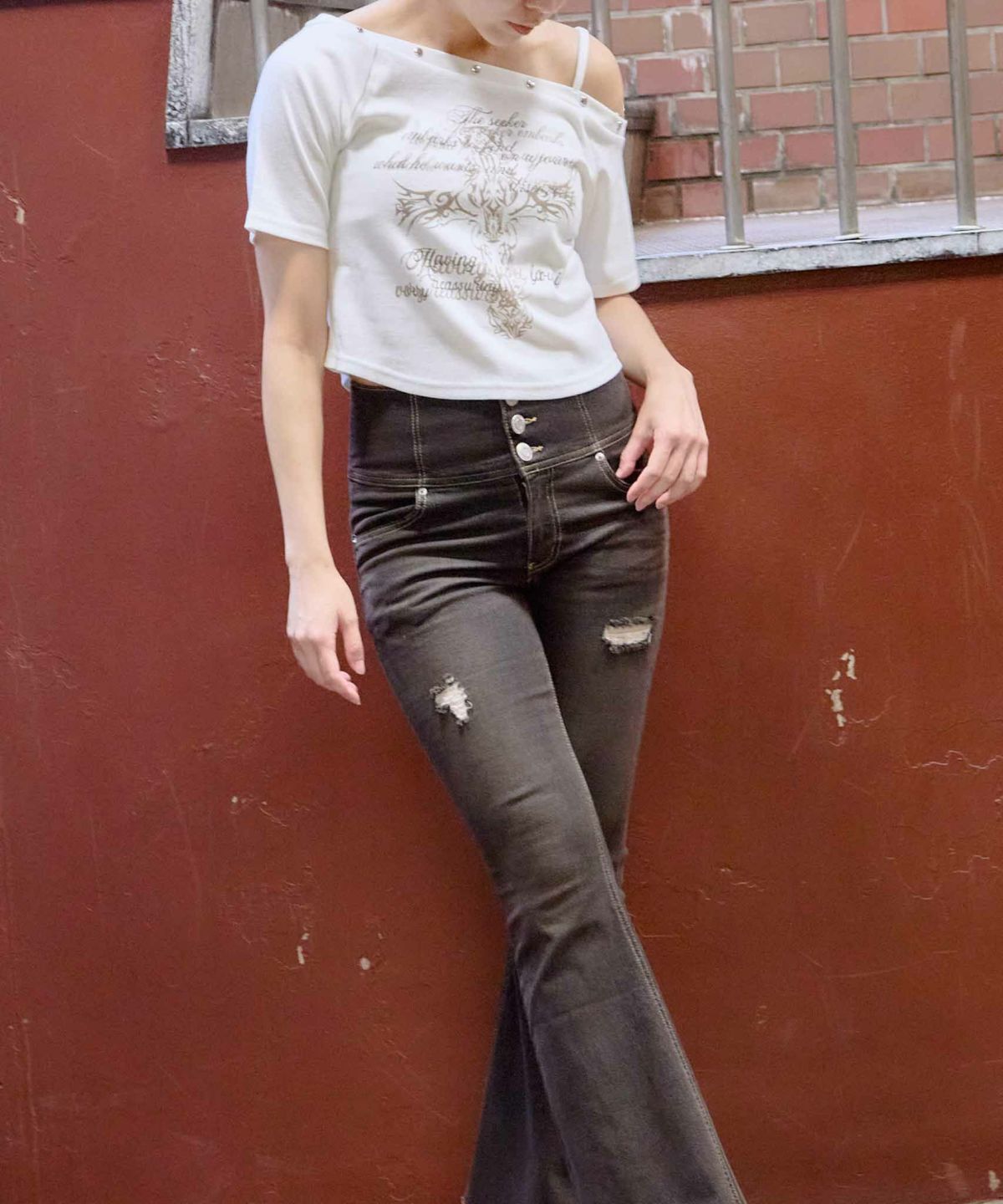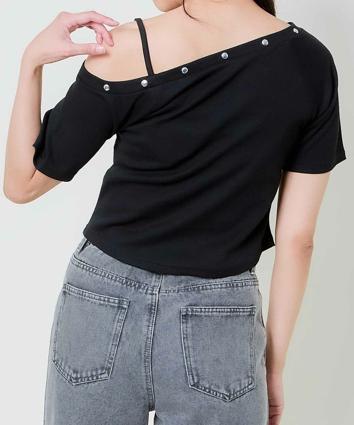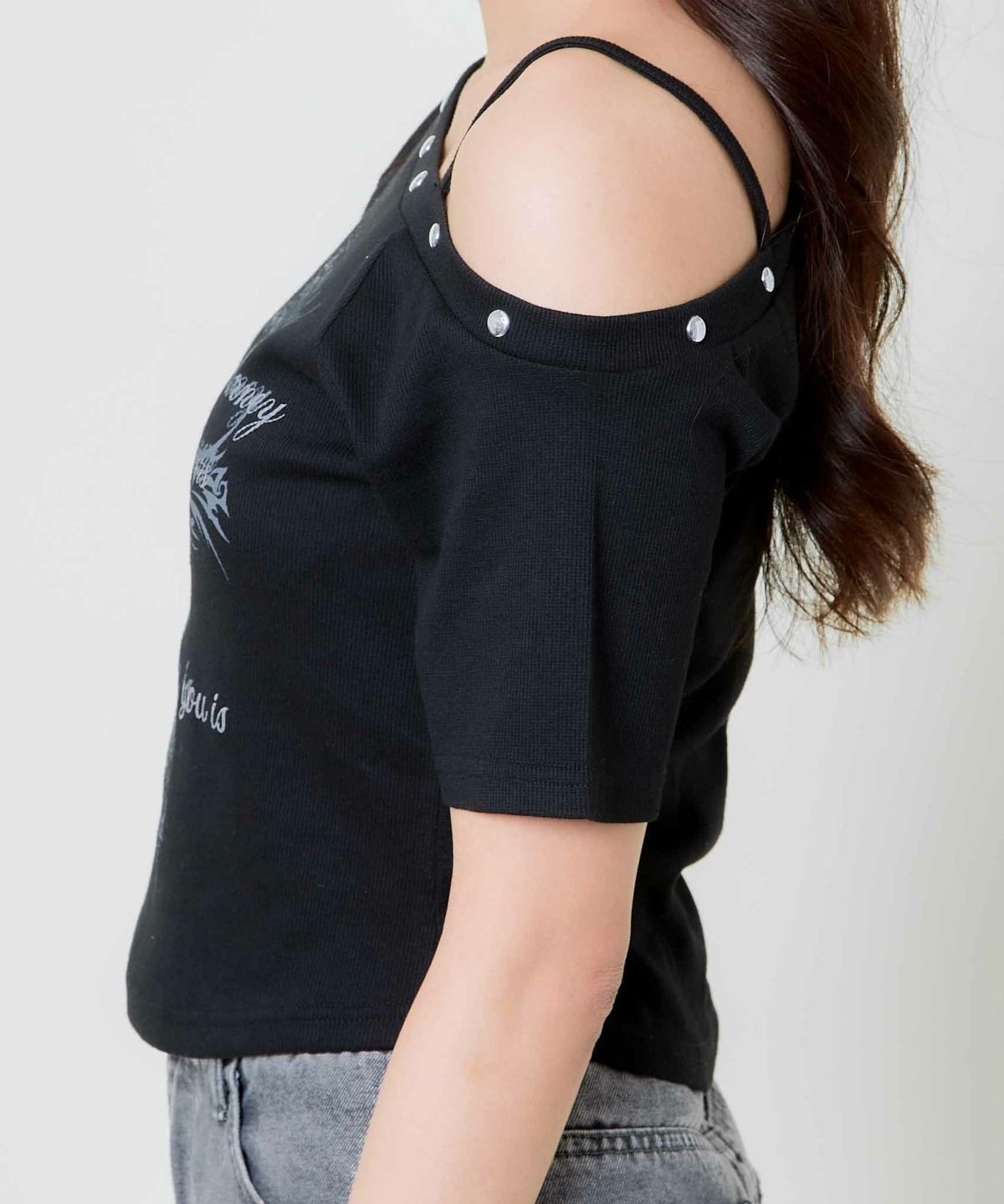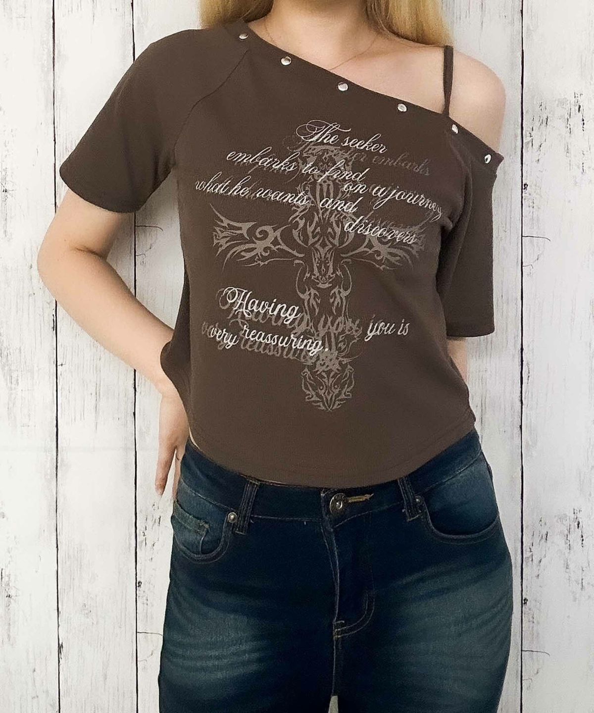 他の画像を見る 《クロス風プリント×ワンショルデザイン》レディース Tシャツ 春夏秋 スタッズ付き 2BUY10%OFF 定価 ¥ 4,389 のところ SALE価格 ¥ 1,419 税込 カートに入れる お気に入りに登録する