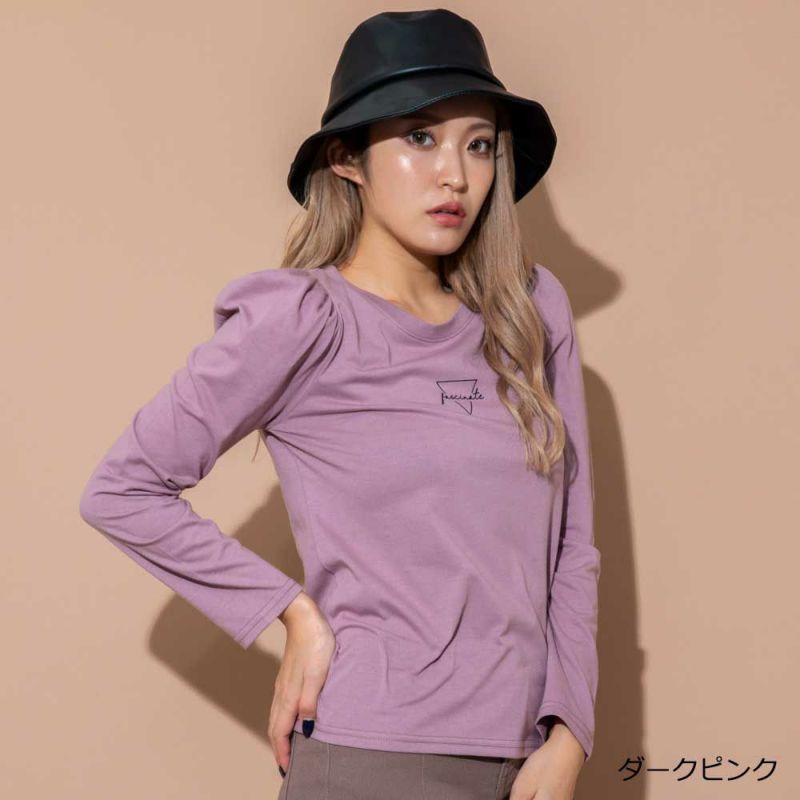 ボリュームのあるパワショルデザインが女性らしいシルエットに☆1枚でももちろん、カーデやパーカのインナーに合わせたりシンプルなデザインなのでロングシーズン使えます◎フロントのロゴプリントがコーデのアクセントに♪