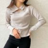 胸元がセクシーにオープンされた襟付きテレコトップスが登場★大人女子のトレンドらしさがあり部分肌見せが流行中♪胸元が空いているのにセクシー過ぎず健康的なのが魅力のポイントです◎パンツスタイルでスッキリ、スカートスタイルでガーリーに仕上がります☆