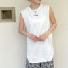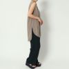 胸元にレイアウトされたシンプルな刺しゅうロゴがオシャレなノースリーブTシャツが登場★首が少し詰まったミニマルなクルーネックに、裾は前後差のあるラウンドヘムでヒップを隠してくれる「後ろロング丈」がポイント◎ボトムスと合わせて1枚で着るのはもちろん、サロペットのインにも大活躍です☆