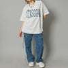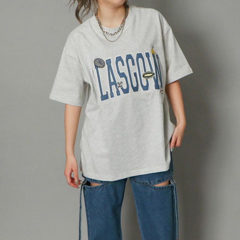 カレッジロゴをフェルト&ステッチデザインにしたTシャツ。散りばめられたフルーツの刺繍が可愛い1枚。ラフなオーバーシルエットが今年っぽいアイテム。お家時間を快適に過ごすルームウェア、ちょっとしたお出掛け時のワンマイルウェアとしても大活躍。