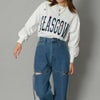 カレッジロゴをフェルト&ステッチデザインにしたロングT。散りばめられたハート刺繍が可愛い1枚。ラフなオーバーシルエットが今年っぽいアイテム。お家時間を快適に過ごすルームウェア、ちょっとしたお出掛け時のワンマイルウェアとしても大活躍。