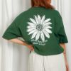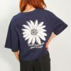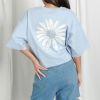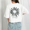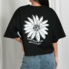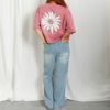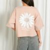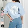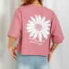 気分もコーデも華やぐデイジーモチーフのクロップドTシャツ。フロントはシンプルながらバックには人気のラメを施したデイジーフラワーが魅力的で目を惹く一枚◎合わせやすく、優しいカラー展開がデイリー使いにもぴったり♪