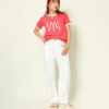 フロントのロゴ刺繍がインパクトある英字Tシャツ。パイピングデザインで、シックな大人っぽいコーデが完成する◎レギュラー丈で、ボトムを選ばず着用出来るのも嬉しいポイント。