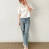 人気のハート刺繍が両面に施されたTシャツ。コンパクトなシルエットながら、程よく体が泳ぐサイジングが嬉しい◎フェミニンから、カジュアルコーデまで幅広いスタイルにマッチ☆