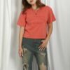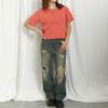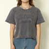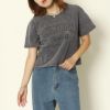 トレンド感溢れるヴィンテージ加工を施したピグメントTシャツ。凹凸のあるエンボスロゴが高見え◎ショート丈なのでハイウエストのボトムとのスタイリングがオススメ。