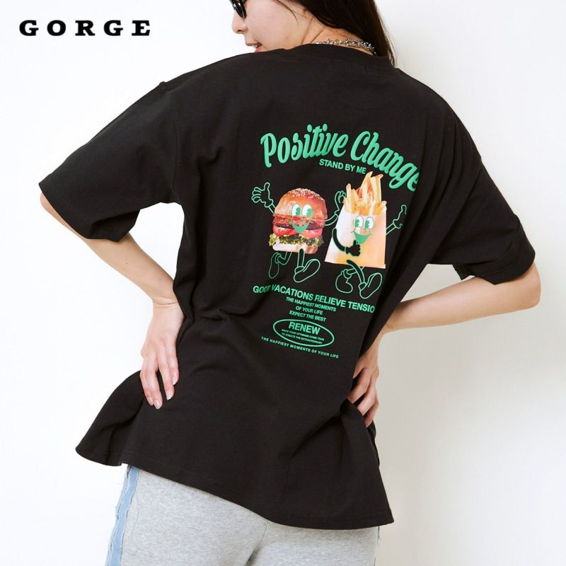 ハンバーガー柄がポップでユニークな印象を与えるTシャツ。発泡プリントを使用しているので、デザインに立体感が生まれ、他にはない個性を楽しめます。ゆったりとしたシルエットでリラックス感のある着心地もポイント◎