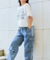 ハイウエストのボトムスと合わせてメリハリを効かせたり、キャミワンピのインナーとしてレイヤードするのもおすすめ。ロゴデザインがアクセントになるので、小物はミニマルにまとめるのが好バランス。