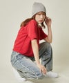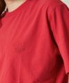 フロントはあえて無地でミニマルに仕上げ、背中に施された立体感あるロゴ刺繍が主役。切りっぱなし風のステッチが程よくラフで、こなれたムードを演出します。ややワイドめのボックスシルエットで、ルーズすぎず大人っぽい着映え感も魅力。