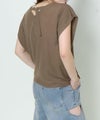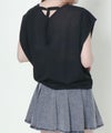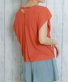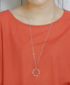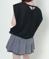 フロントは潔いほどミニマルな無地Tシャツに、取り外しできるネックレスがプラスされ、シーンに応じて着こなしをアレンジ可能。背面にはV字に入ったラインにリボンと金具をあしらい、後ろ姿まで計算されたデザインが光ります。夏にぴったりなさらりとした素材感も魅力的。