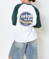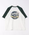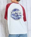 白地のボディに別の色のラグランスリーブが施されており、クラシックなベースボールTシャツのような雰囲気を醸し出しています◎