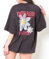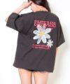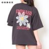 胸元の刺繍がさりげないアクセントになり、背面には発泡プリントで施された立体的な文字と、ラメが入ったお花のイラストが目を引くデザインになっています。