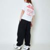 ハンバーガーをモチーフにした発泡プリントが立体感を生み、シンプルなTシャツに遊び心をプラス。コンパクトなシルエットで、合わせるアイテムを選ばず、デイリーユースにも最適です。
