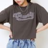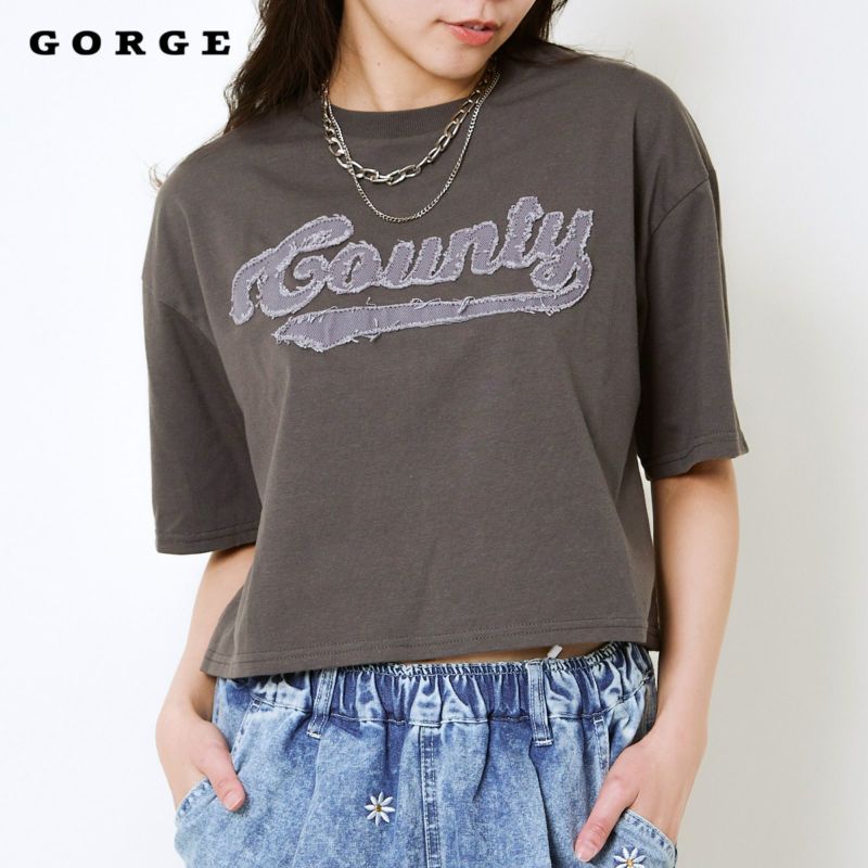 ツイル貼り付けデザインがアクセント!ショート丈Tシャツ