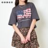 シンプルなシルエットながらも、ロゴの中にさりげなく配置された旗柄が全体にアクセントを加え、スタイリングの主役になる一枚です。