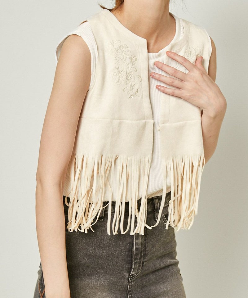 裾のフリンジが歩くたびに揺れて、スタイリングに動きをプラス♪
