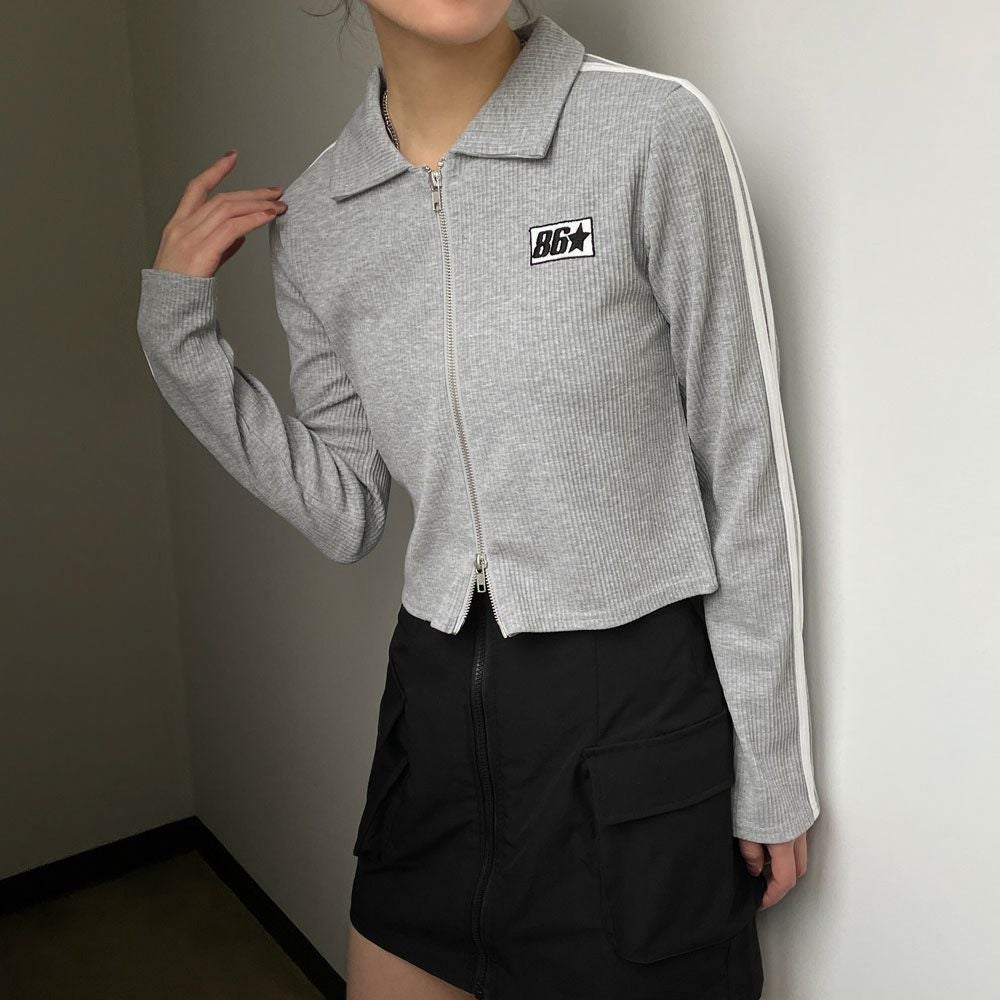 W ZIP襟付きラインTops