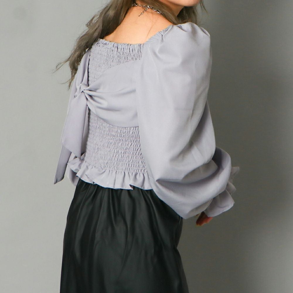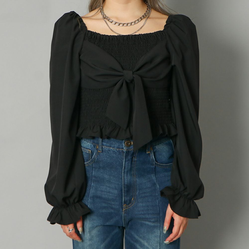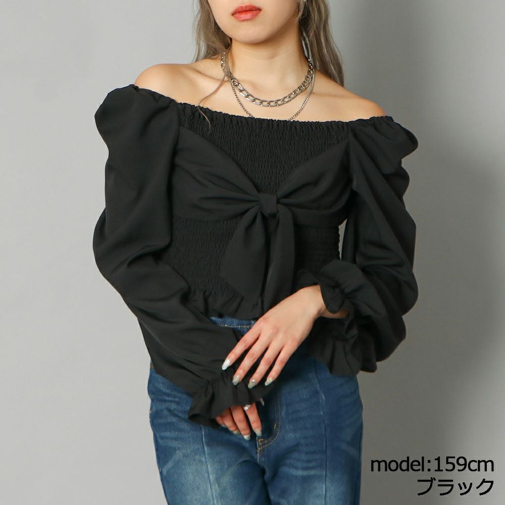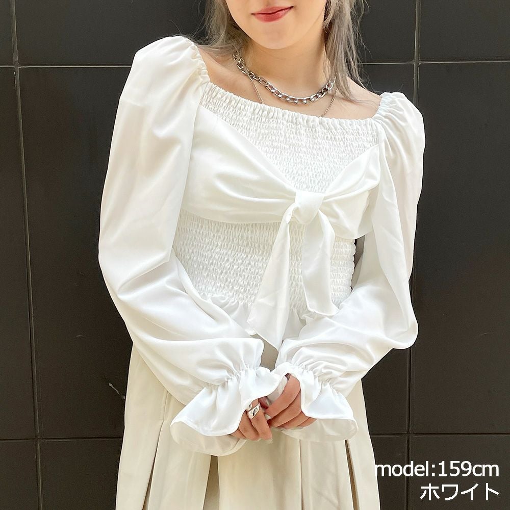 前後シャーリング2WAYリボンブラウス