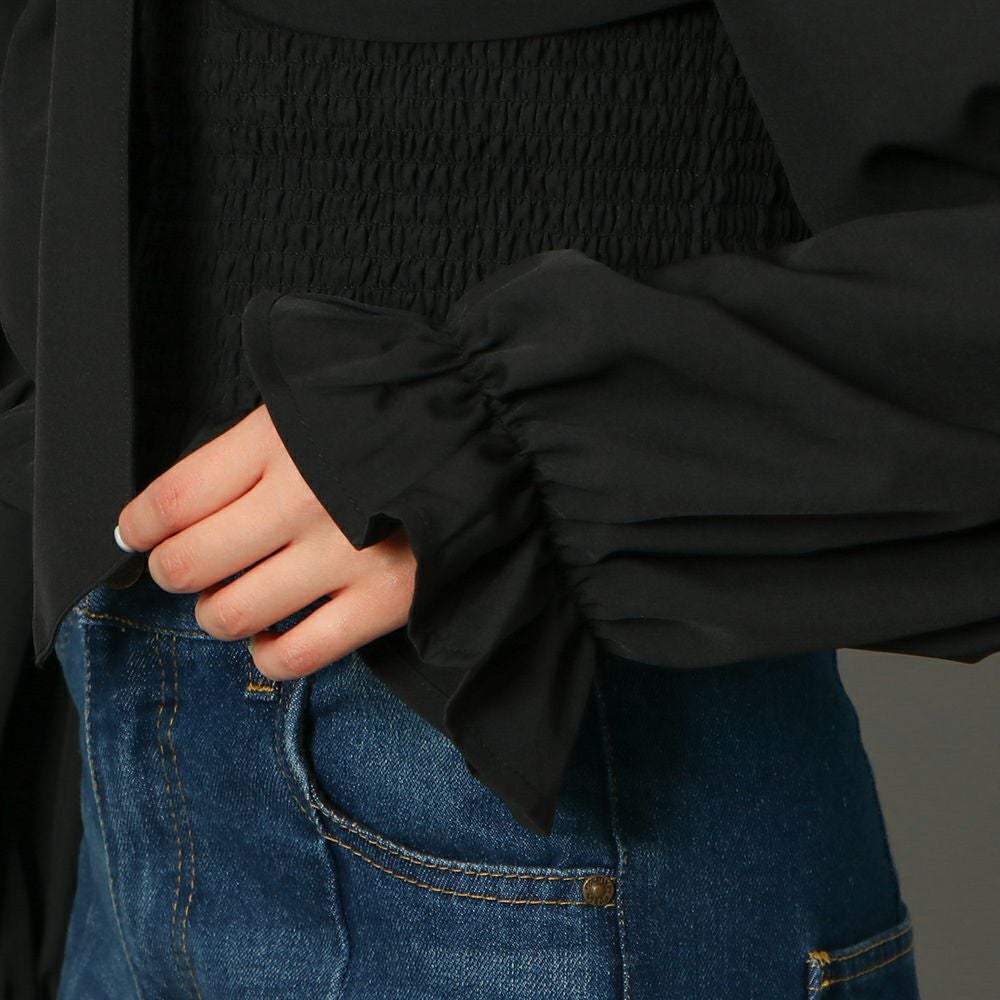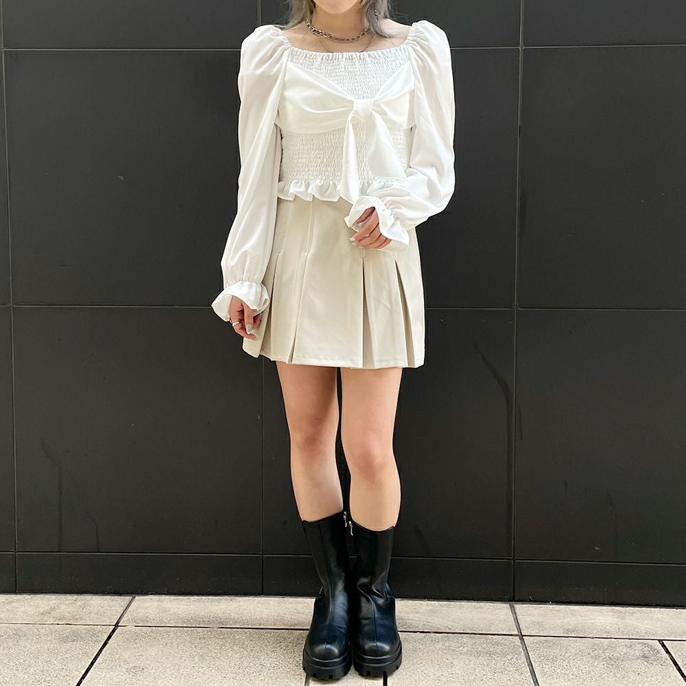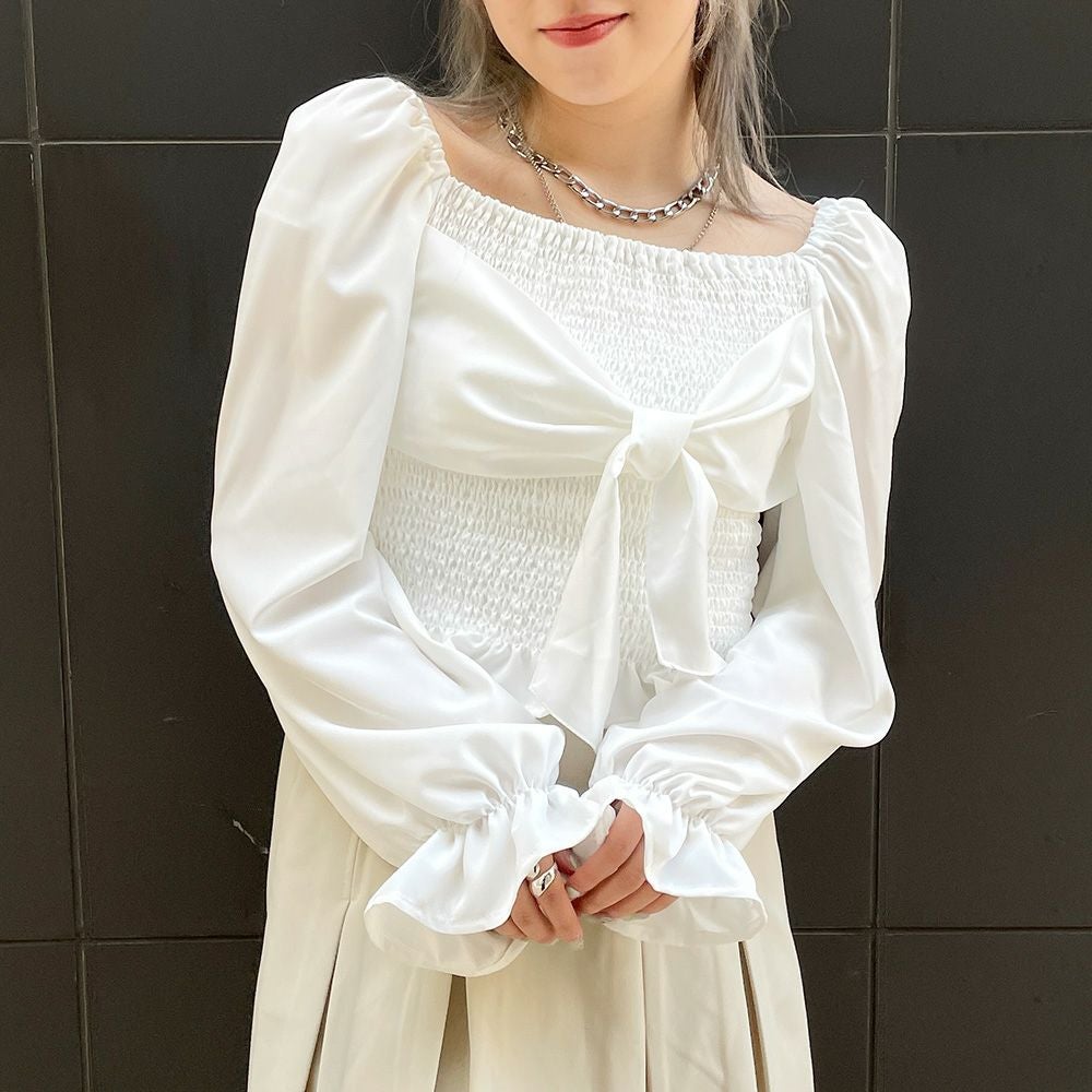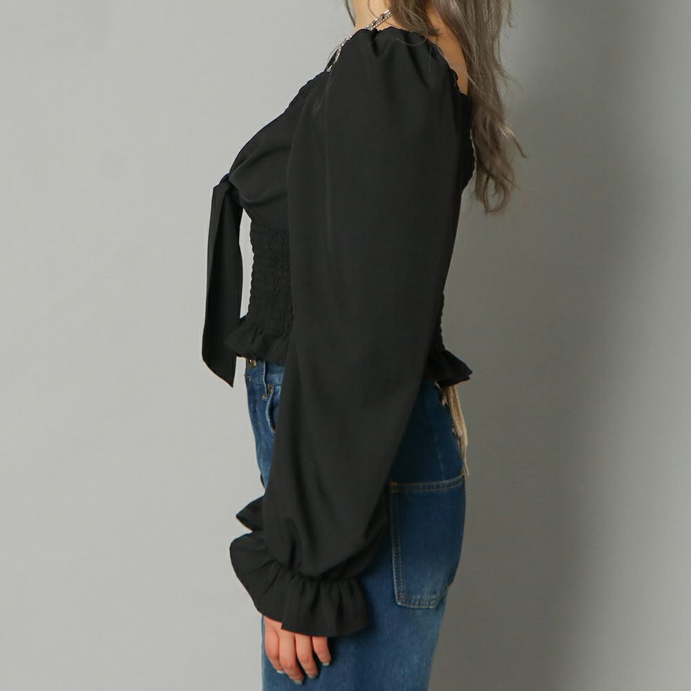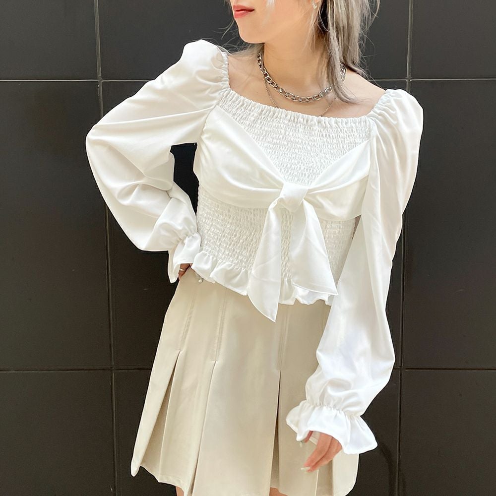 前後シャーリング2WAYリボンブラウス