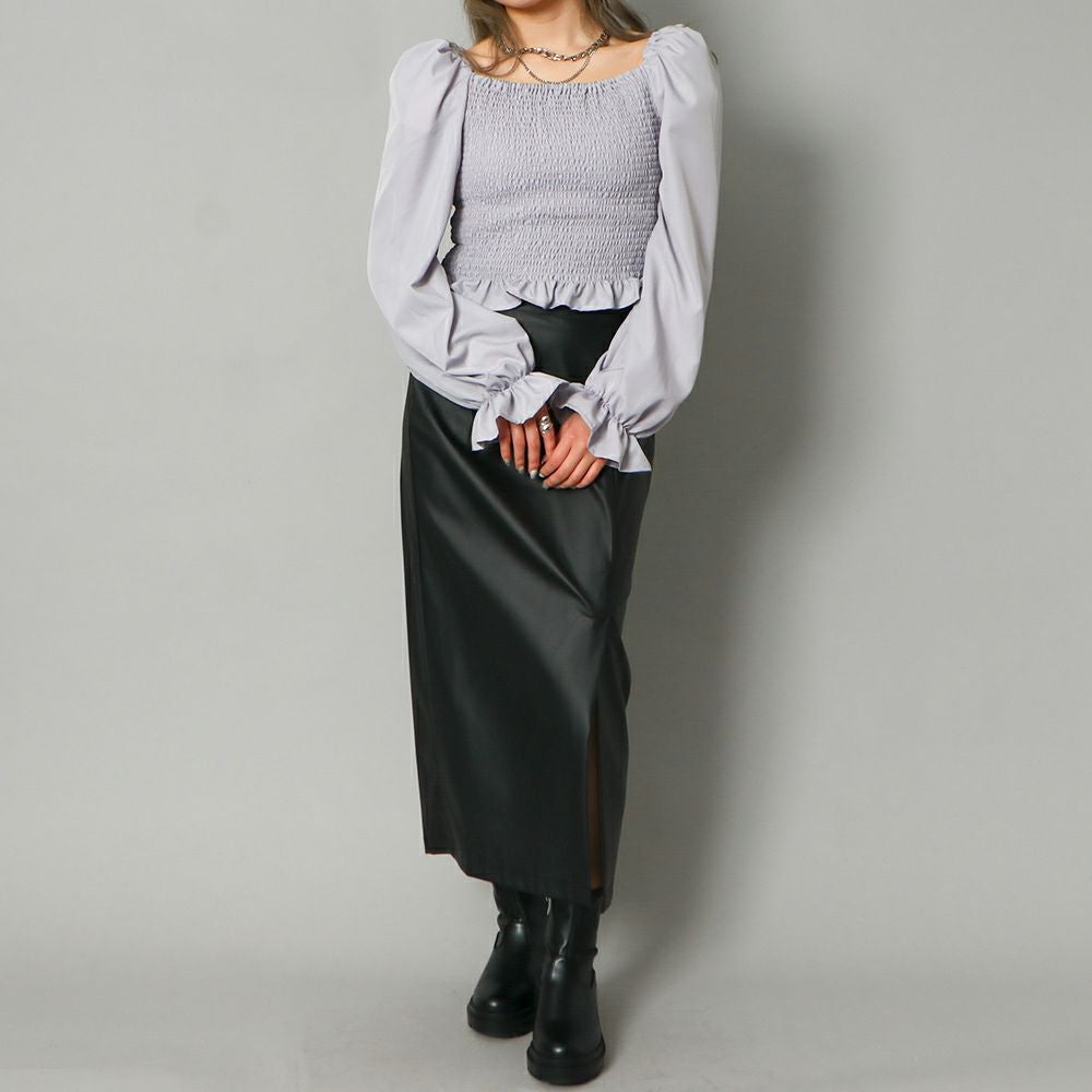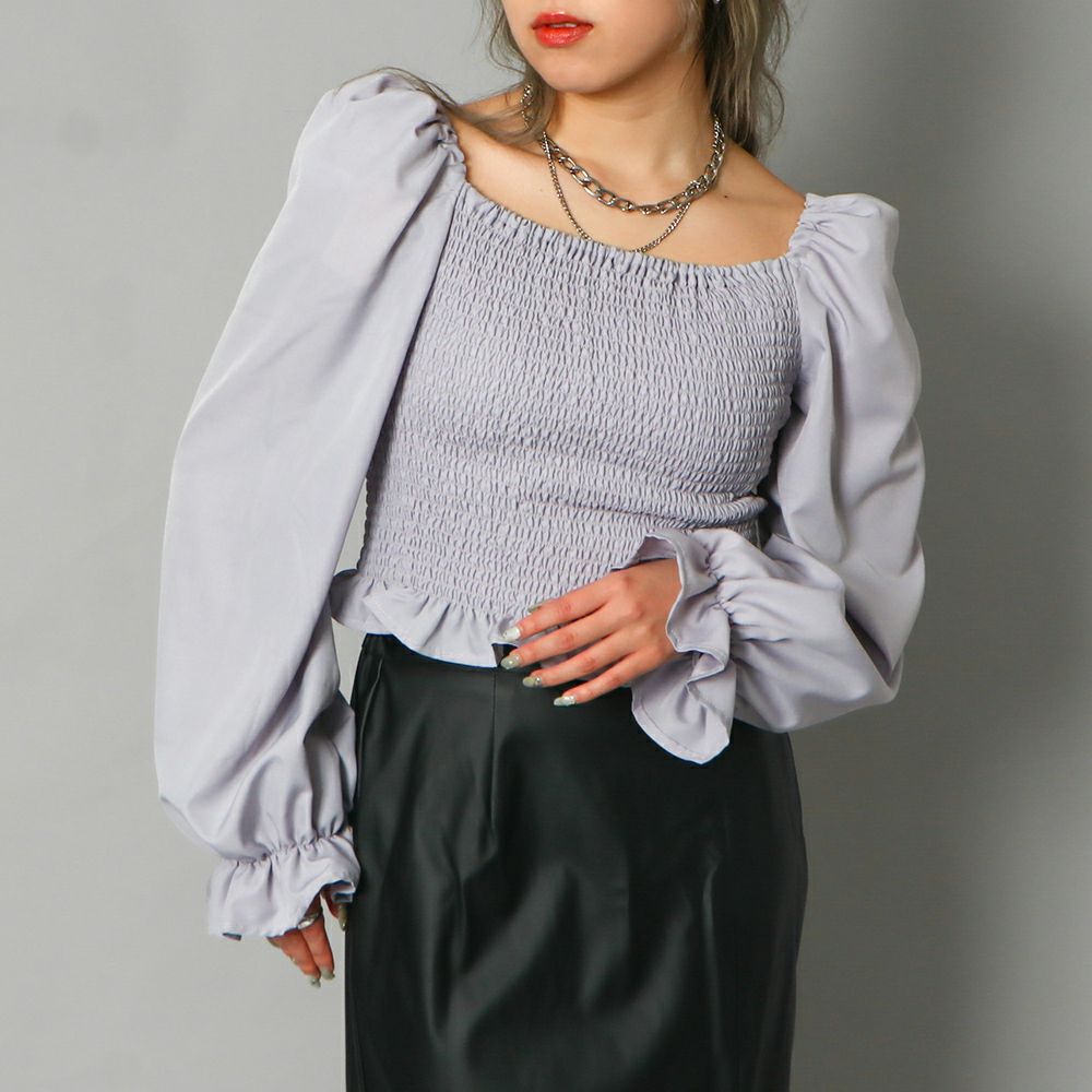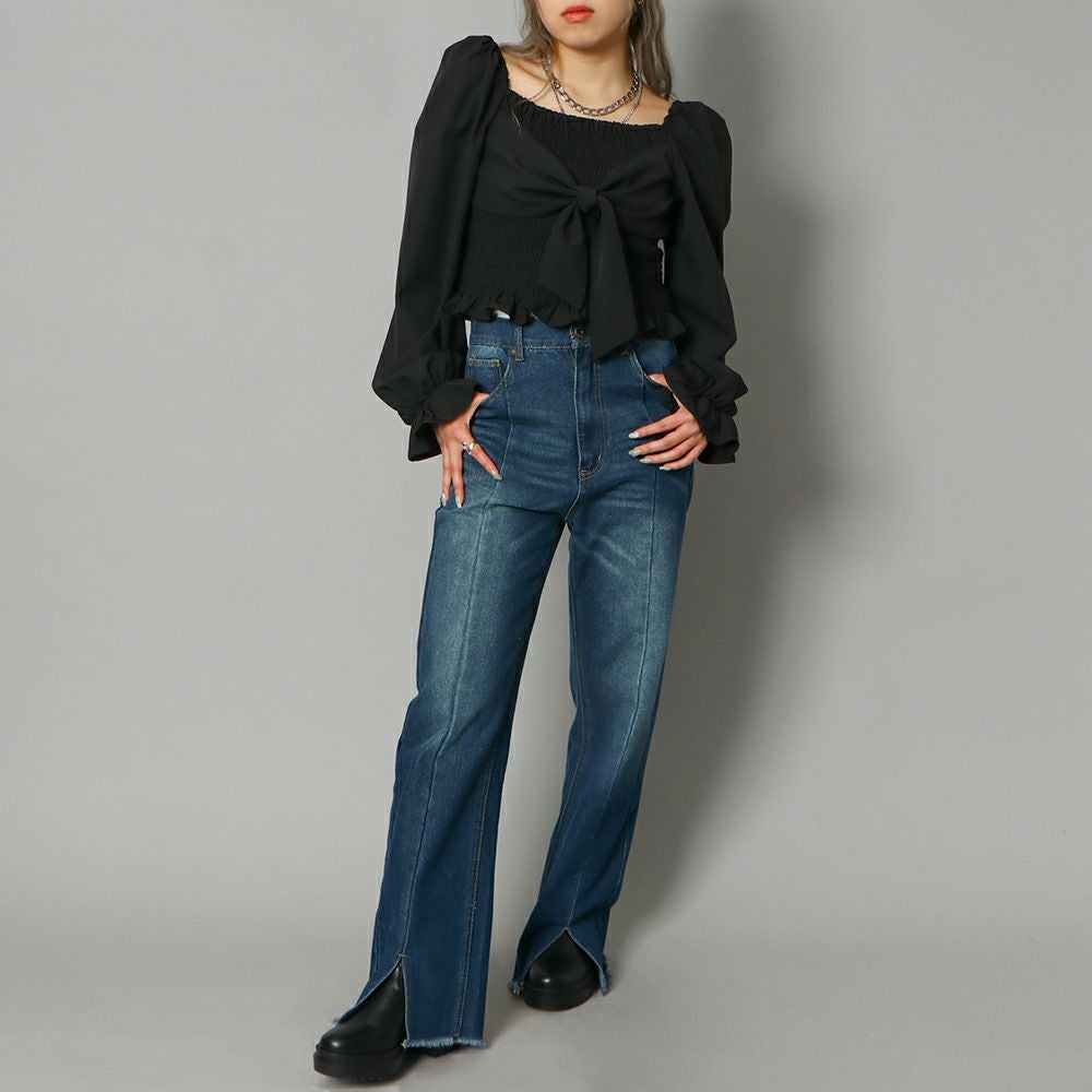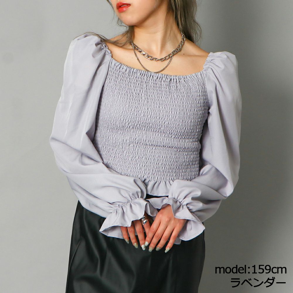 前後シャーリング2WAYリボンブラウス