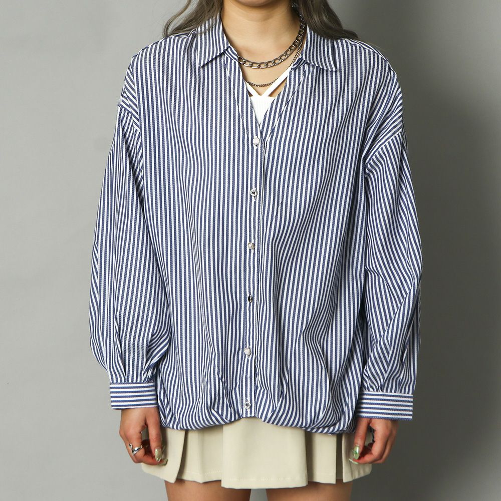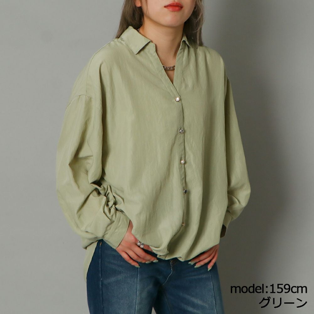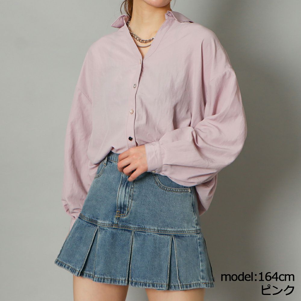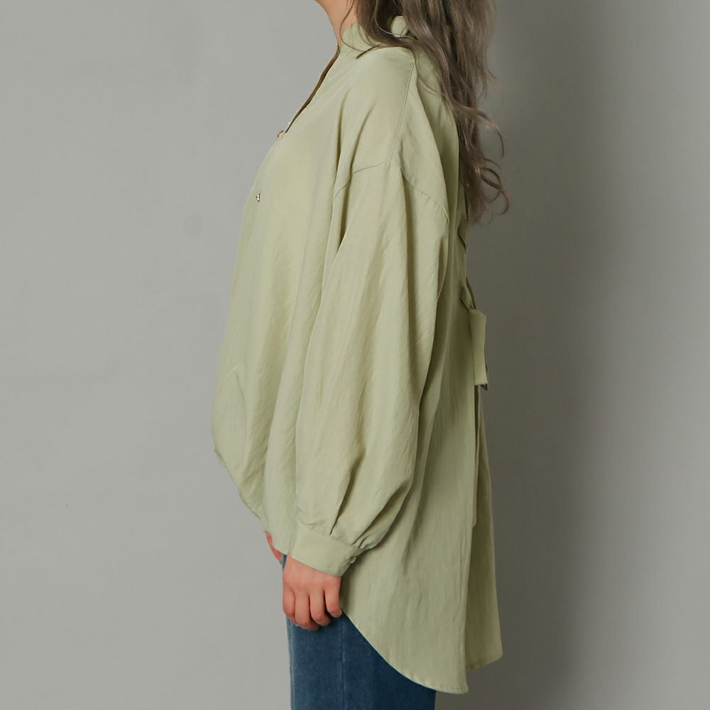 多種ボタンバックリボンシャツ