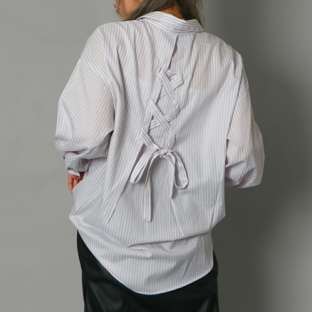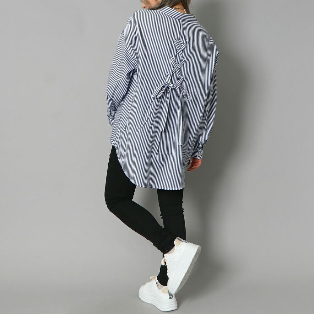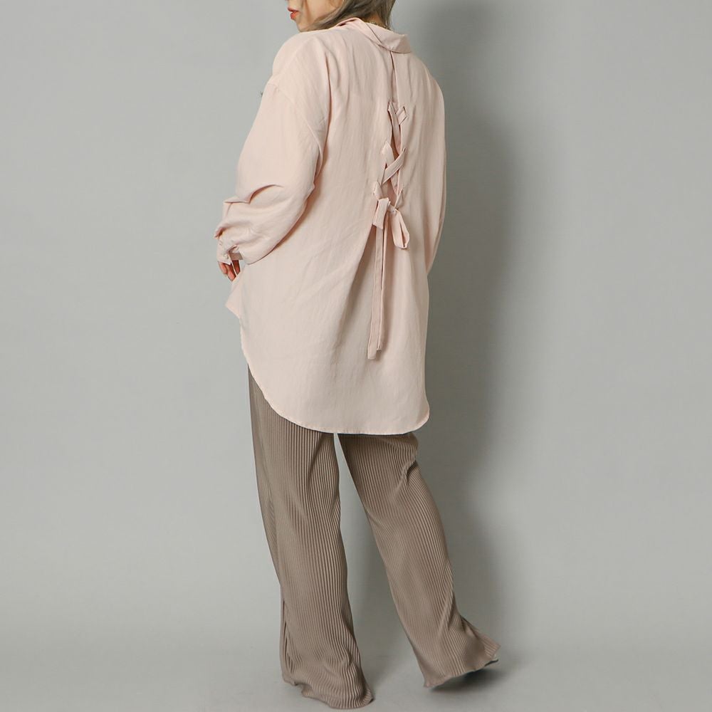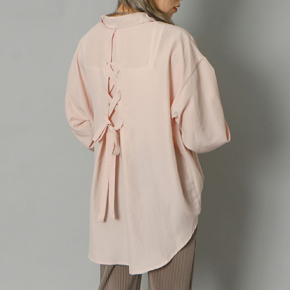 多種ボタンバックレースアップシャツ