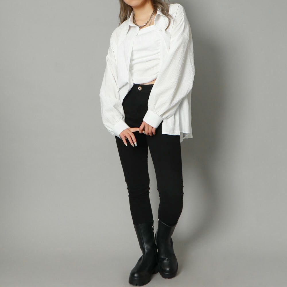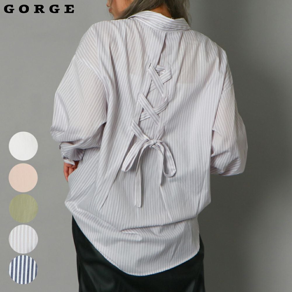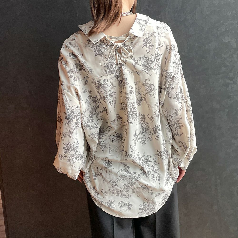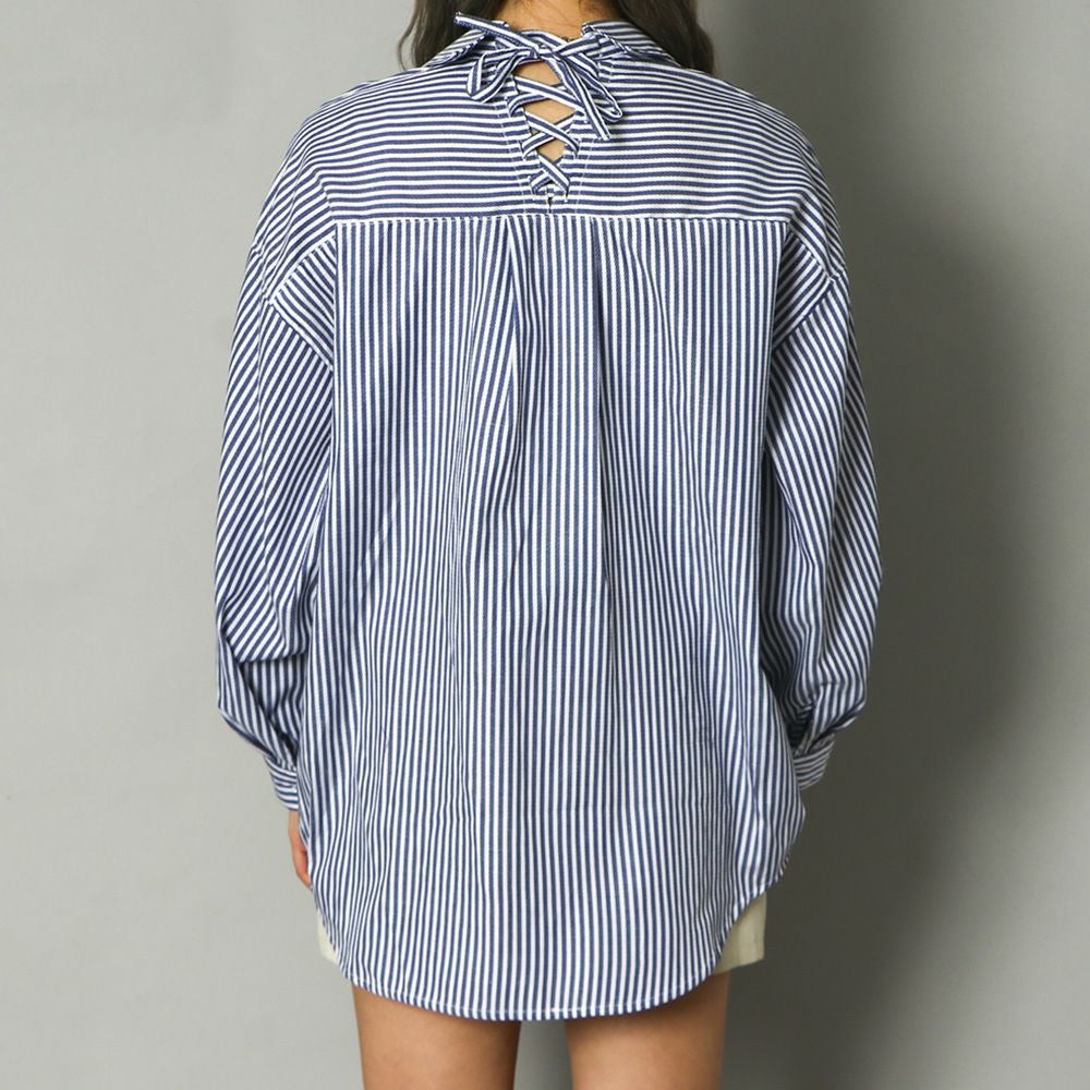 多種ボタンバックレースアップシャツ