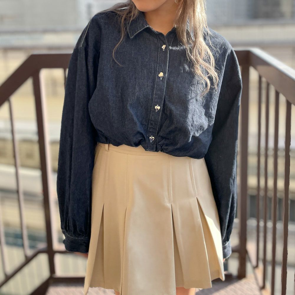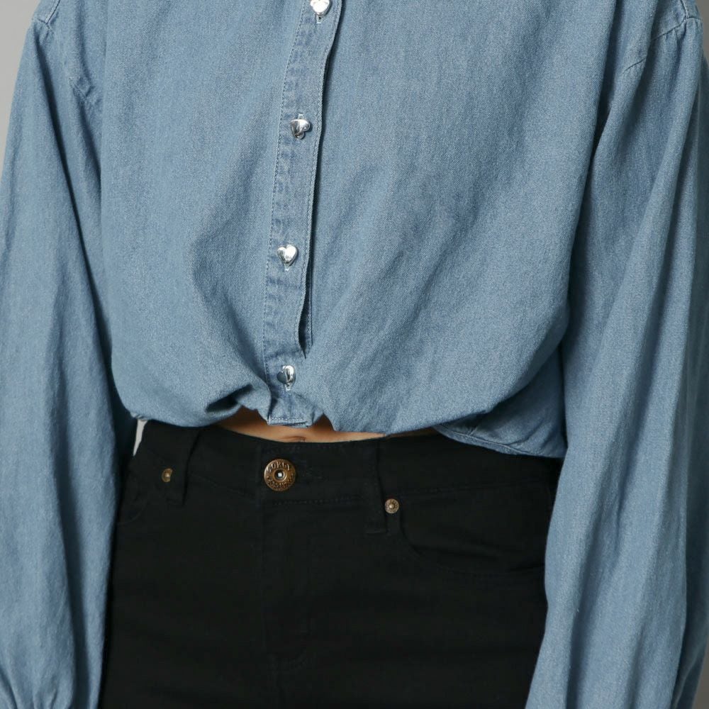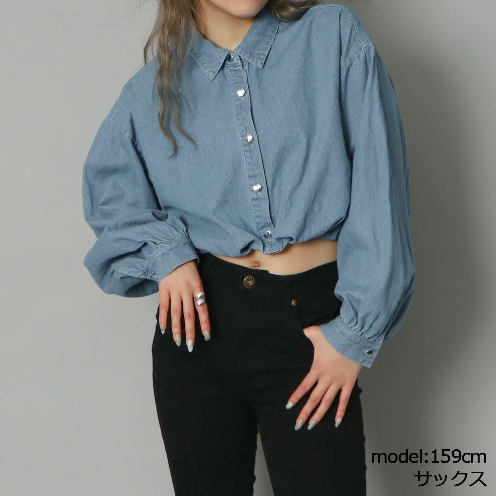 ハートボタンデニムショートシャツ